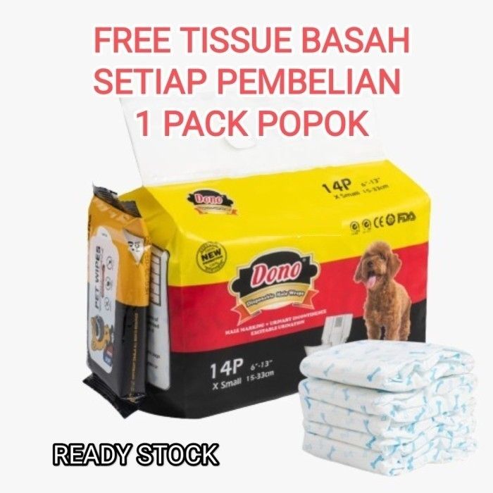 Pampers Anjing Popok Anjing Jantan Male Popok Dono Kuning + Bonus Wipe - Dono Kuning S terlaris,