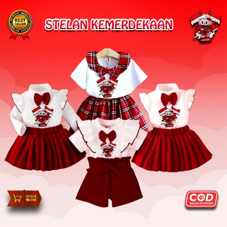 PROMO MERAH PUTIH SETELAN BAJU ANAK PEREMPUAN USIA 1-5 TAHUN BAJU SETELAN ANAK KEMERDEKAAN
