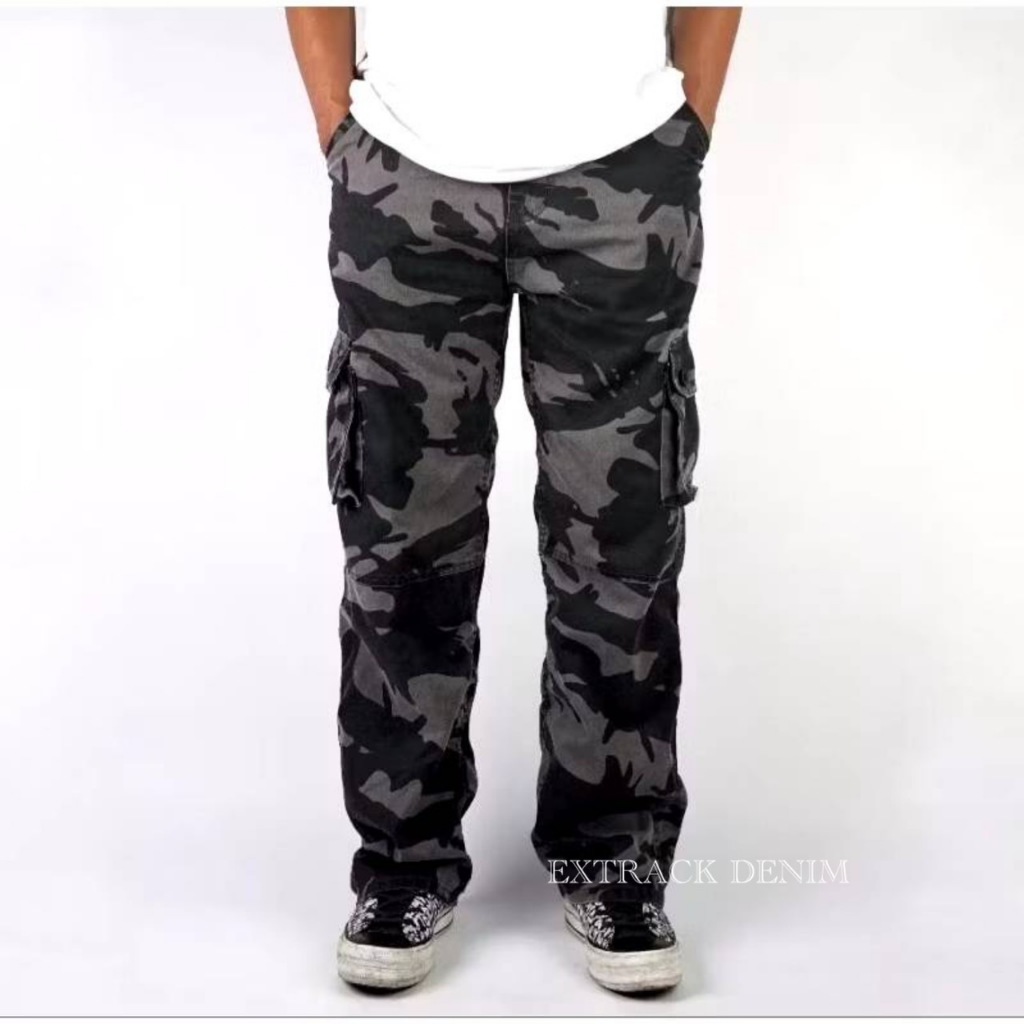 Celana Cargo Loreng Pria Reguler Fit Gombrong Terbaru Bahan Nonstretch Kekinian