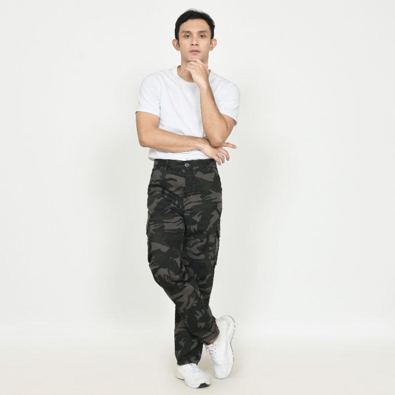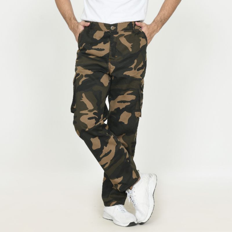 Celana loreng/doreng panjang cargo pria wanita