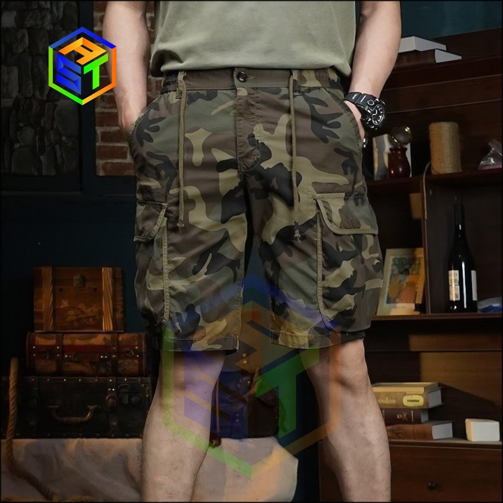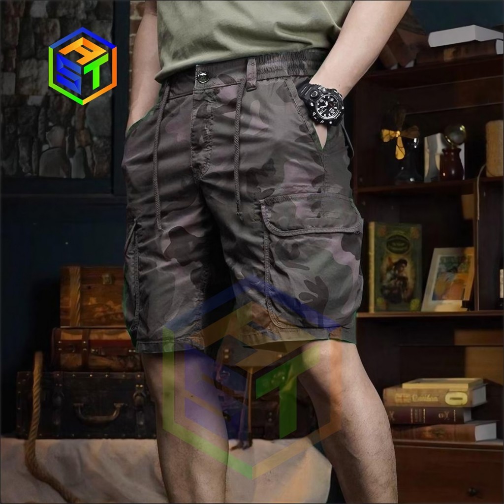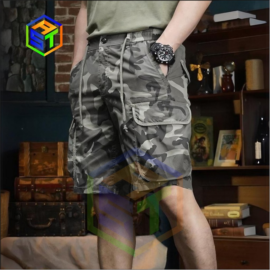 AST Store Celana Pendek Pria Wanita celana pendek dewasaa Cargo Loreng Pinggang Kombinasi Karet Tali