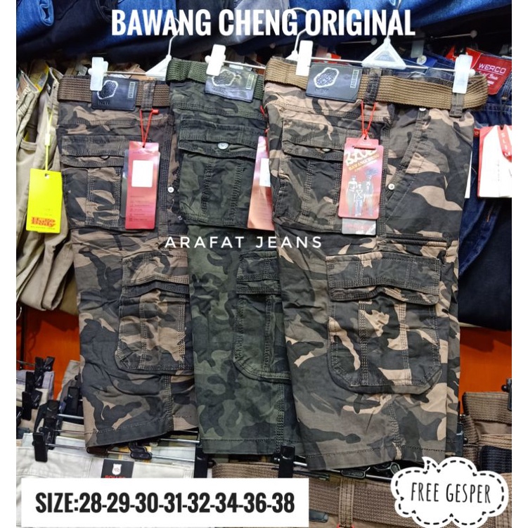Celana pendek cargo import loreng bawang cheng