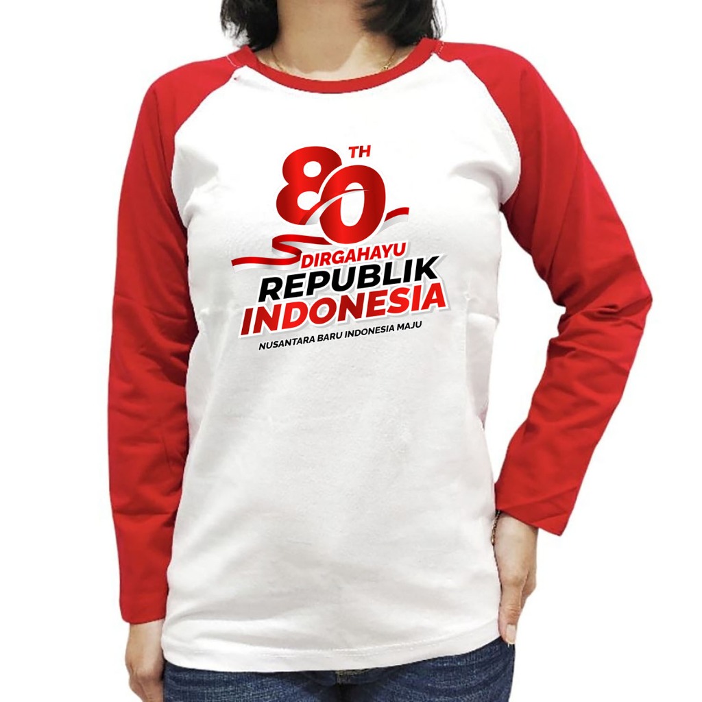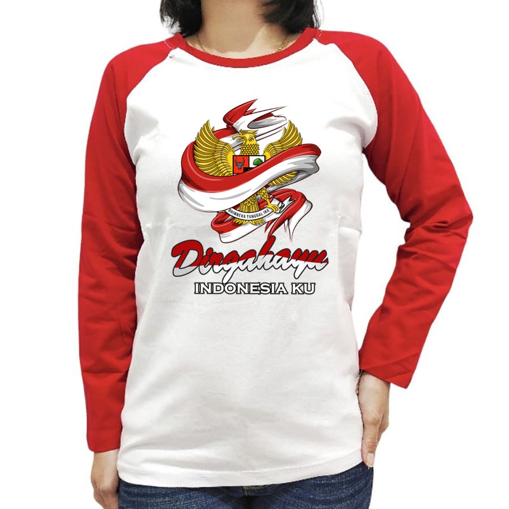 KAOS RAGLAN WANITA LENGAN PANJANG, KAOS DIRGAHAYU INDONESIA, KAOS 17 AGUSTUS 1945