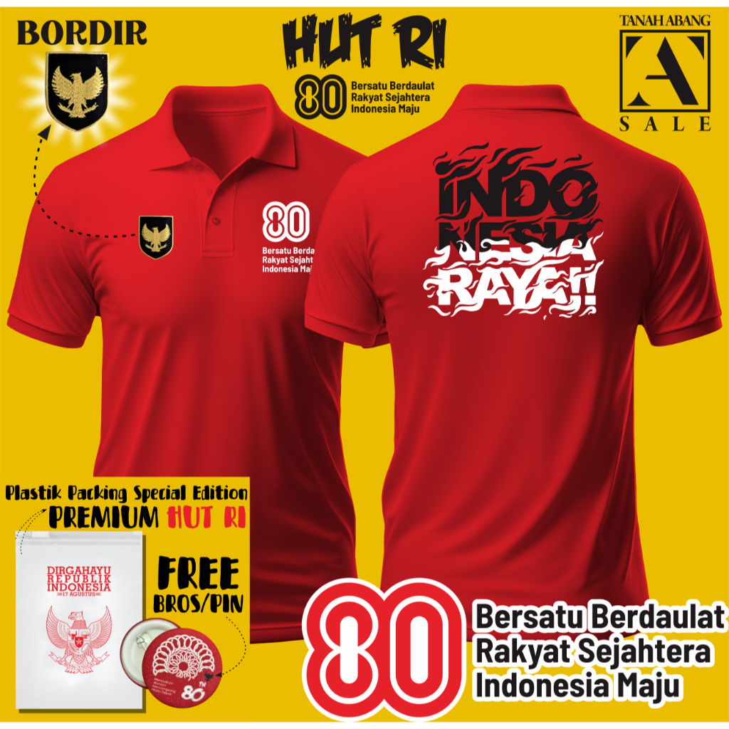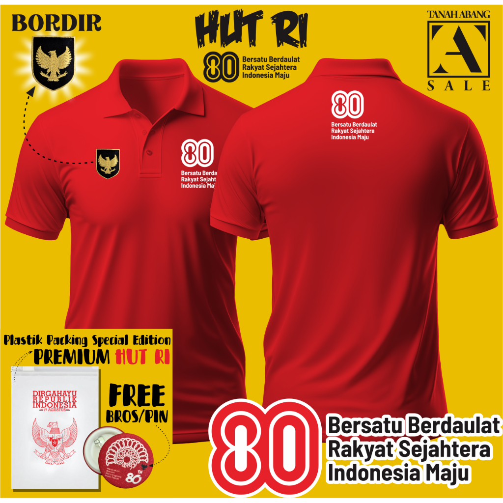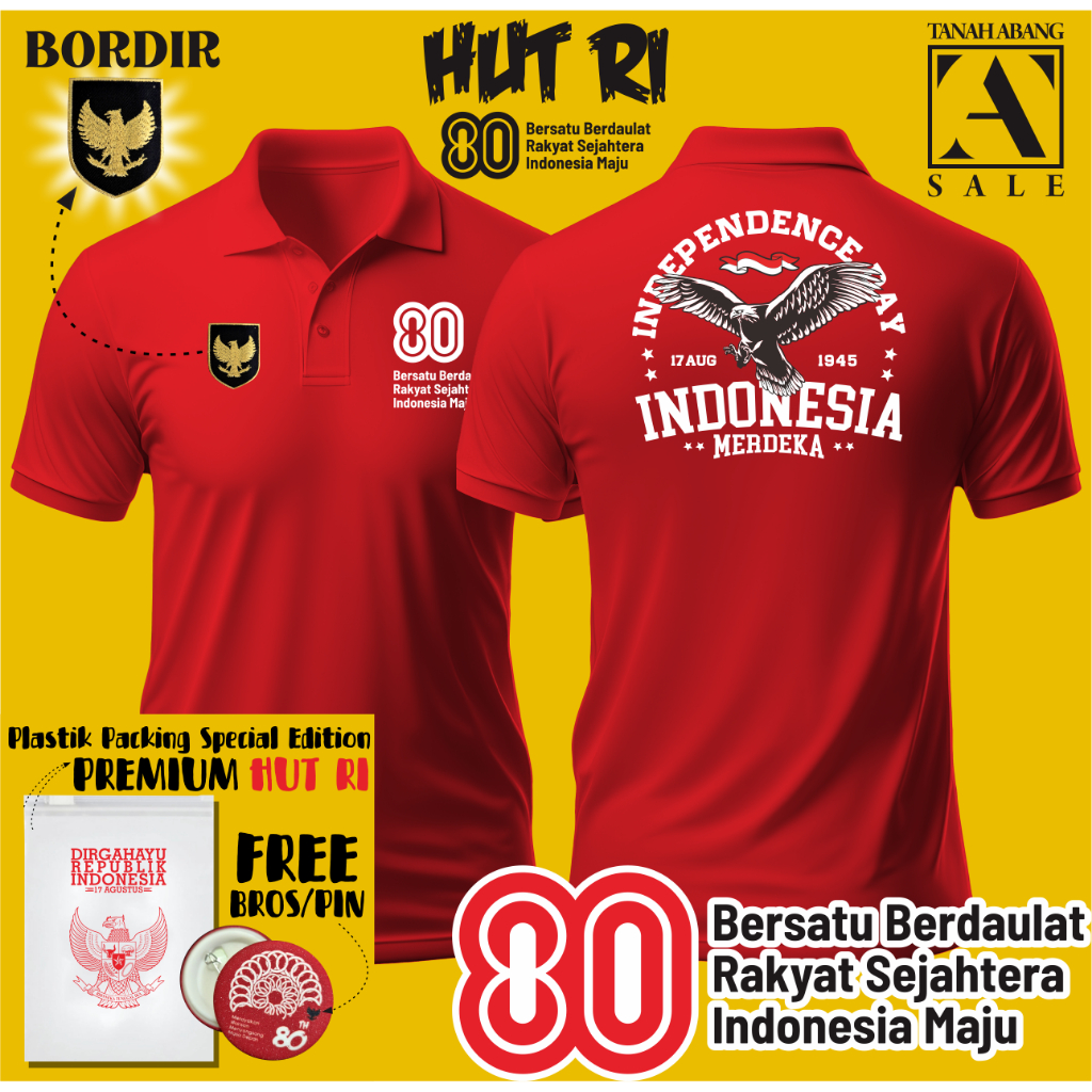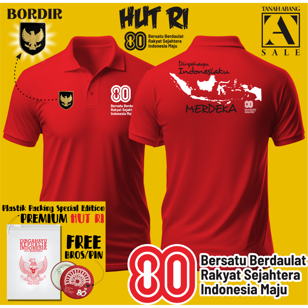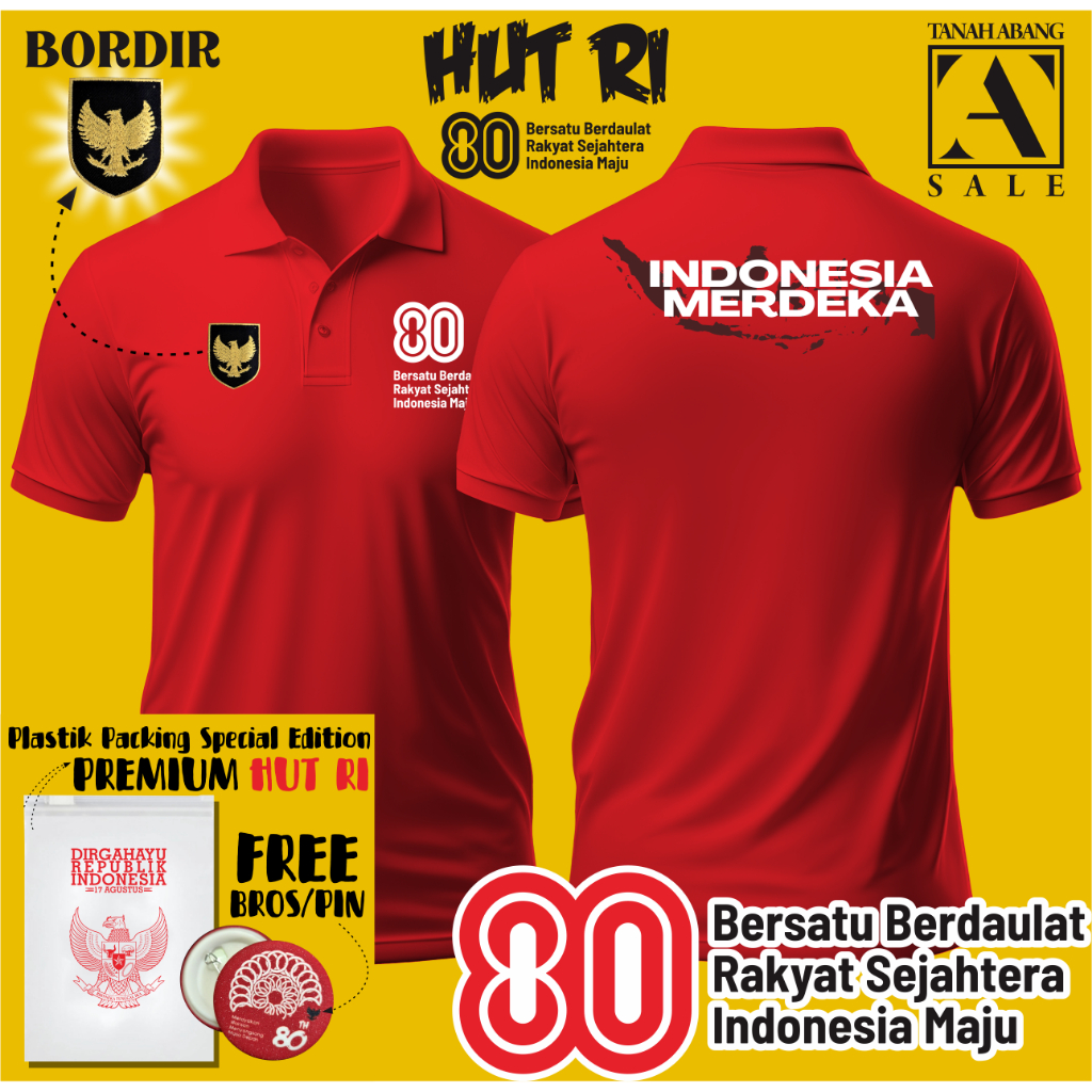 POLO PENDEK 17 AGUSTUS 2025 HUT RI KE 80 INDONESIA MERDEKA MERAH PUTIH DEWASA PREMIUM OFFICIAL