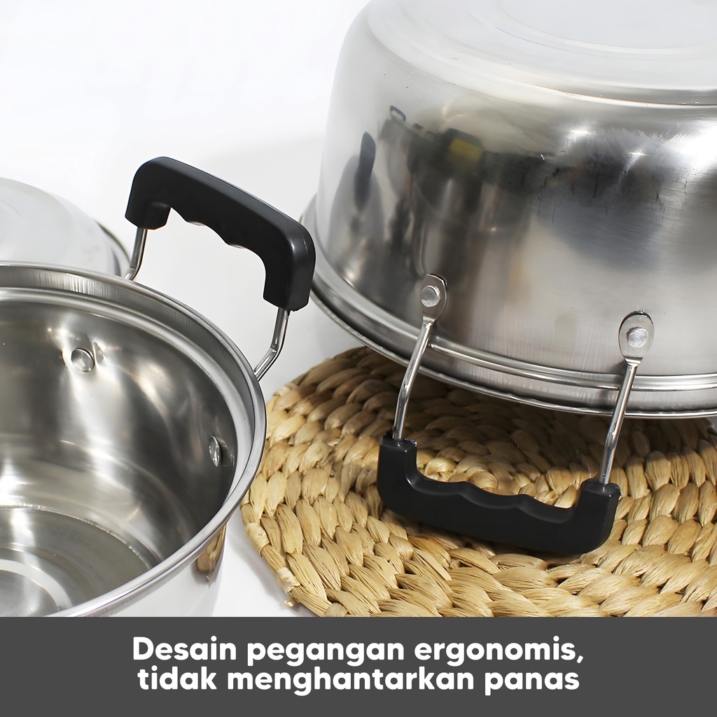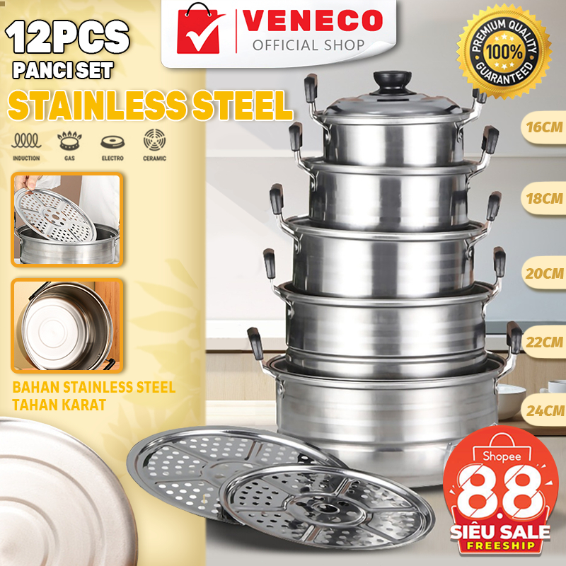 VENECO 12in1 Panci Steamer Set Stainless isi 5 pcs + 2pcs Kukusan Panci Bahan Tebal PREMIUM