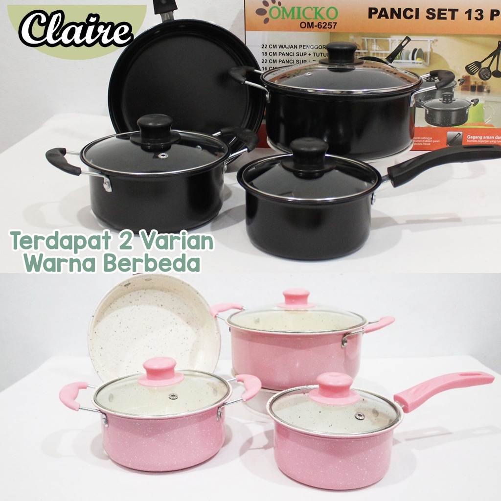 Panci Set 13 Pcs Anti Lengket Spatula 6 Pcs Penutup Kaca / Cookware Set Non-Stick