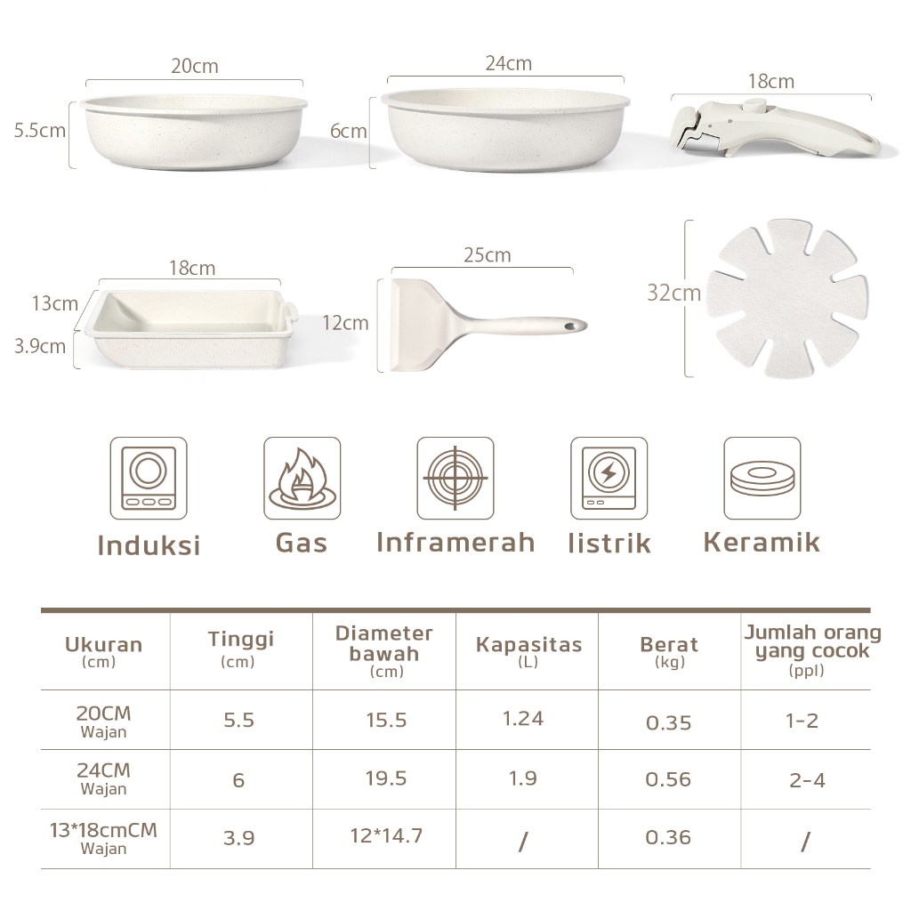 Gipp Peralatan Masak Set 7 Pcs Wajan Panci 20/24 cm Anti Lengket Lapisan Granit Alat Masak Lengkap