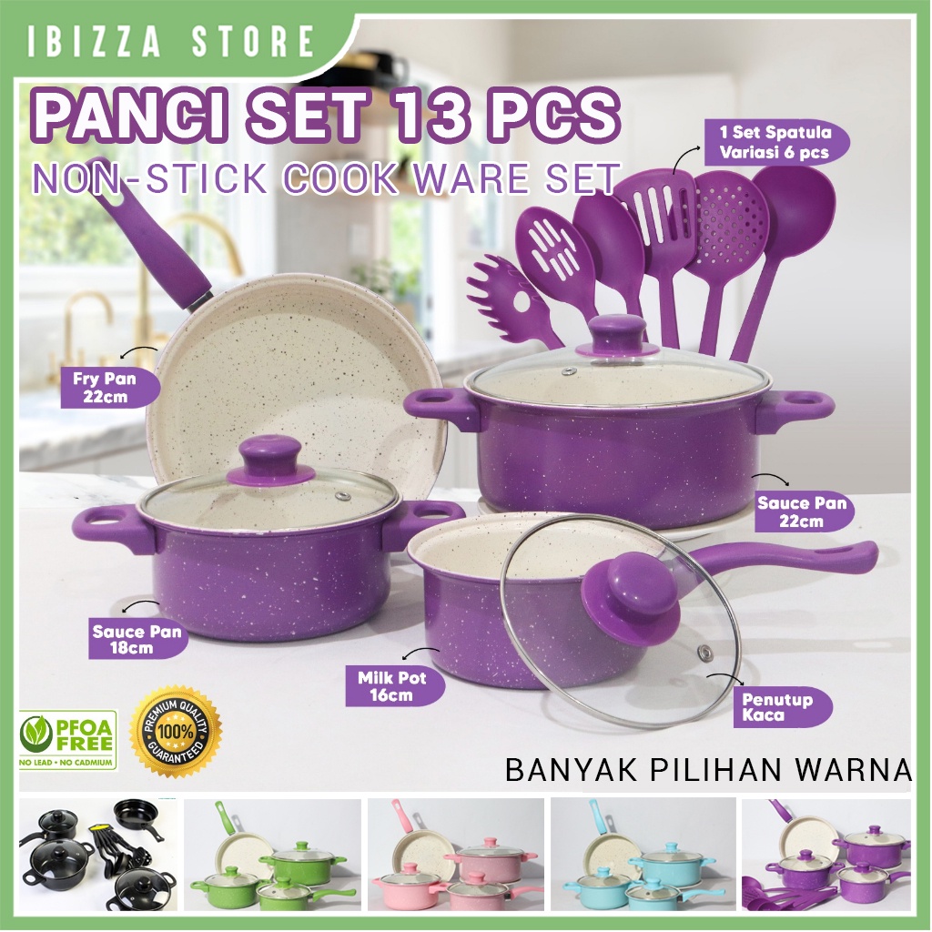 PANCI SET 13PCS WAJAN PENGGORENGAN ANTI LENGKET SPATULA PENUTUP KACA / PAKET / NON STICK