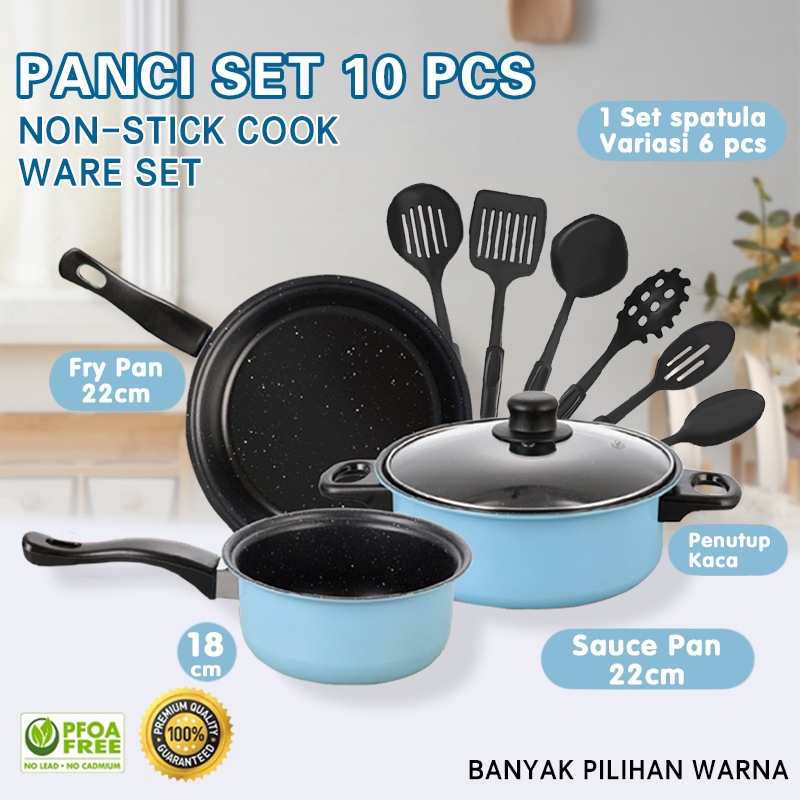 Panci Teflon 1 Set 10 Pcs panci set lengkap Panci Stainless steel Anti Lengket best seller