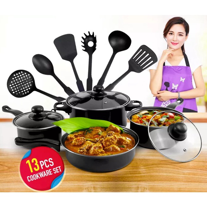 Panci 13Set Cookware Set 13Pcs Anti Lengket Stainless Steel