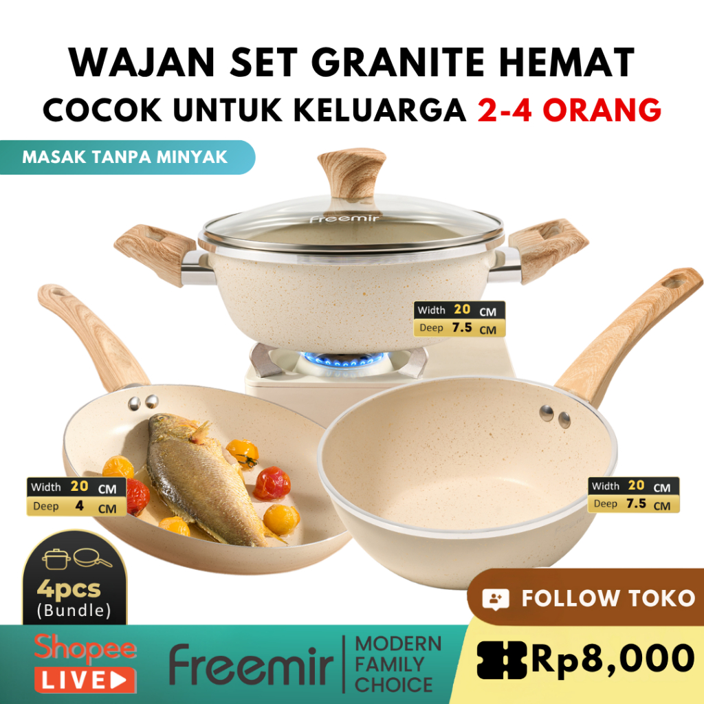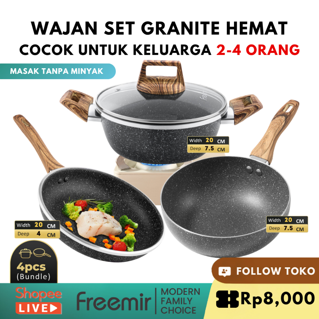 Original Wajan Panci Set Granite 3pcs Cm Premium Anti Lengket Multifungsi Bertutup Kaca Serbaguna