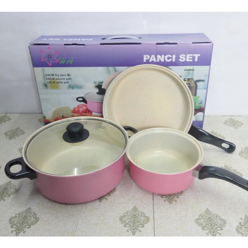 OS -D307- Panci 3 Set Wajan Teflon Stainless Steel Cookware - Panci Wajan Set isi 3pcs