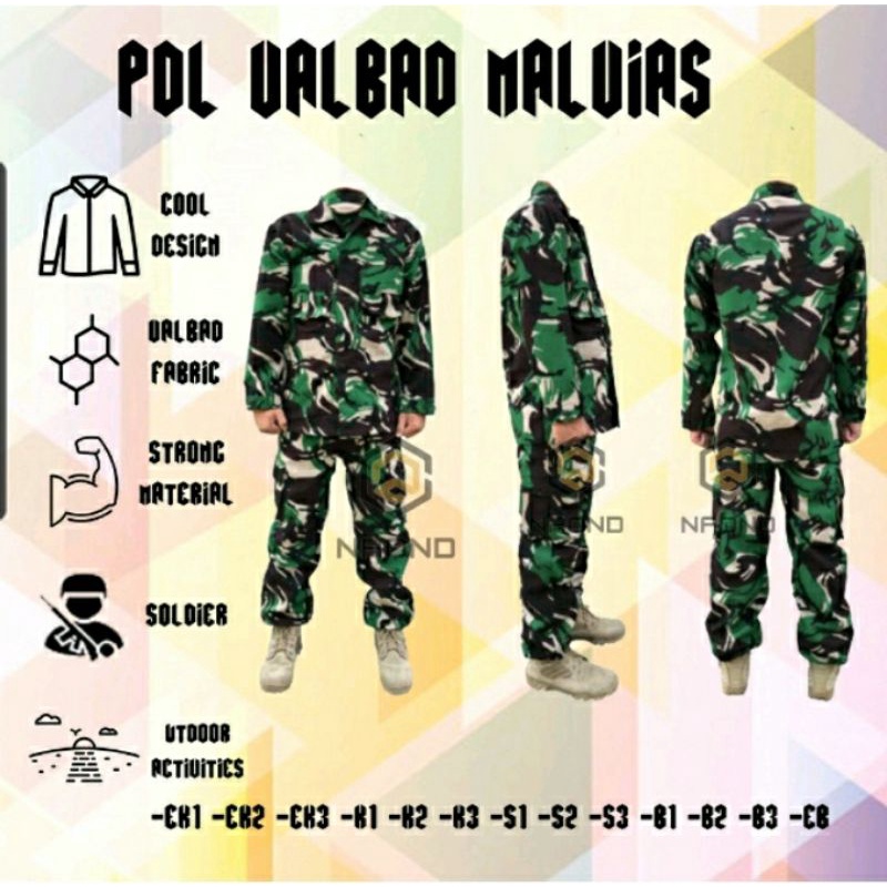 STELAN BAJU PDL VELBED PREMIUM /SETELAN BAJU TEMPUR PDL MALVINAS TNI/BAJU PDL LORENG DINIR LAPANGAN