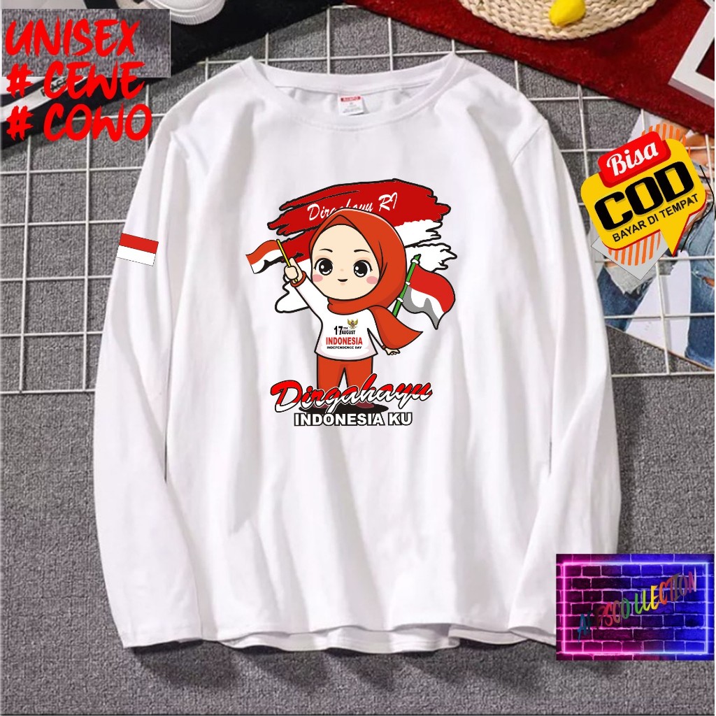 Lengan Panjang Wanita Hut Jilbab RI 80 Kaos Terlaris 17 Agustus 1945 Kemerdekaan Indonesia Kaos Merah Putih Hitam Kaos Cewek Cowok Bendera Merah Putih Hut RI Ke 79