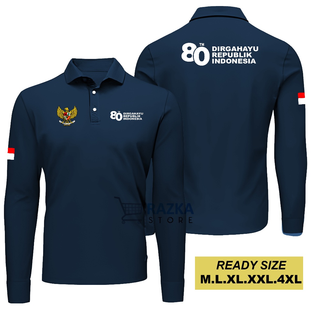 Kaos Kerah Hut Ri Ke 80 Tahun Kemerdekaan Indonesia Lengan Panjang 2025 Terbaru