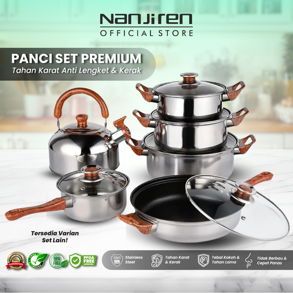 Nanjiren Set Masak Panci 6 Pcs Cookware Stainless Steel Anti Lengket Frypan Panci Wajan Penggorengan
