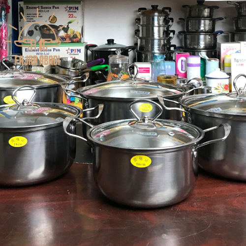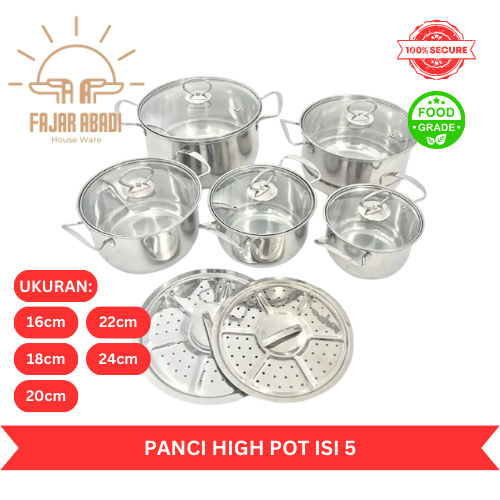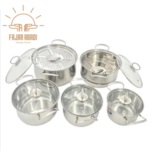 Panci High Pot/PANCI SET ISI 5 PCS STAINLESS tutup KACA +STEAMER KUKUSAN 2PCS