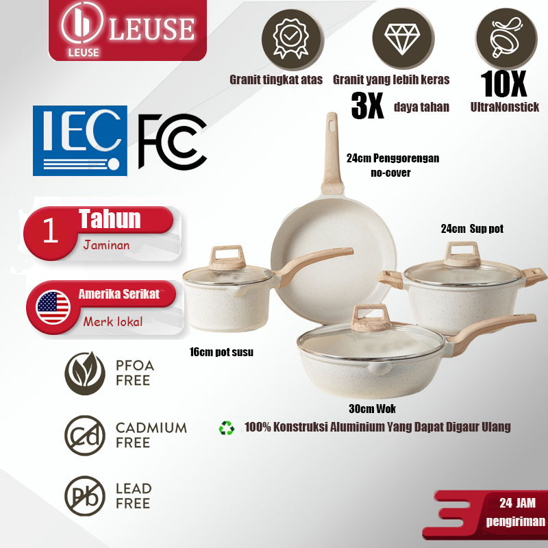 LEUSE Antilengket Peralatan Masak/Peralatan Dapur Cocok Untuk Semua Kompor Wajan Panci Paket Keluarga Set