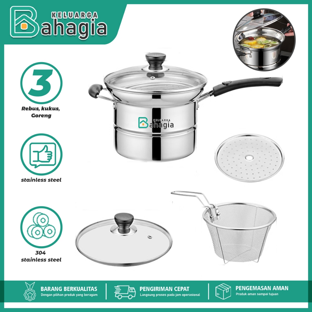 [KB] Panci Set 3in1 Kukus Rebus & Goreng Stainless Multifungsi Aneka Masakan Crispy