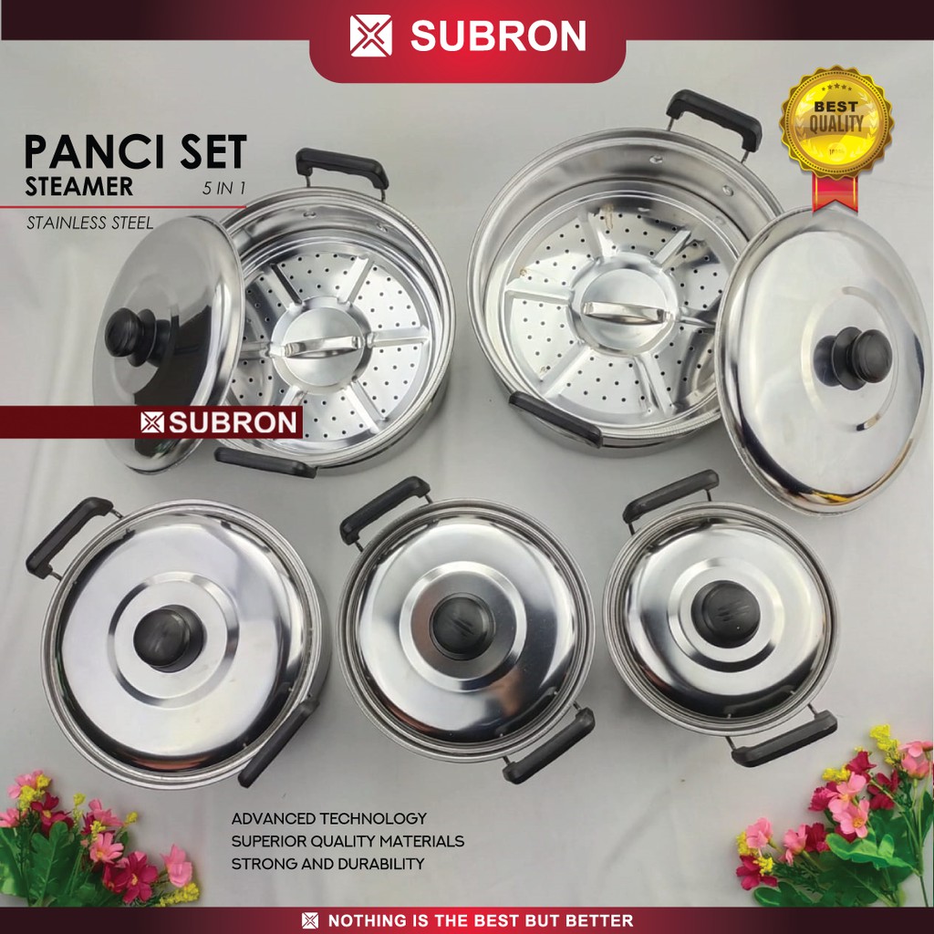 SUBRON Panci Set 5 IN 1 Panci Sup Kukus Stainless Steamer Soup pot