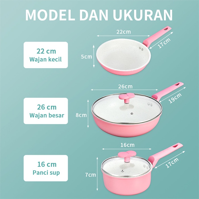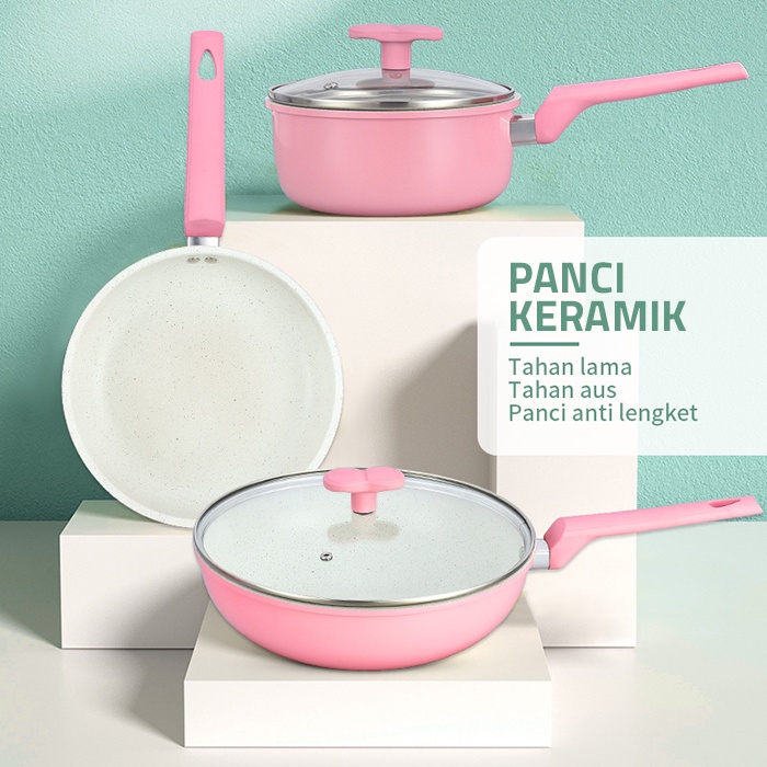 GM Bear Panci Set Keramik Anti Lengket P0410 - Luversa Panci Ceramic Set 3psc