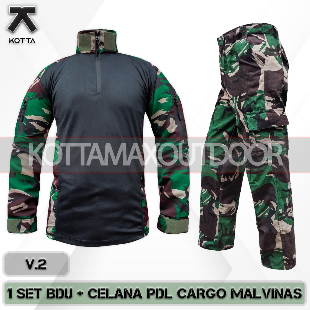 SATU SET SETELAN BAJU KAOS BDU TACTICAL COMBAT CELANA PDL PANJANG CARGO LORENG TNI MALVINAS ARMY