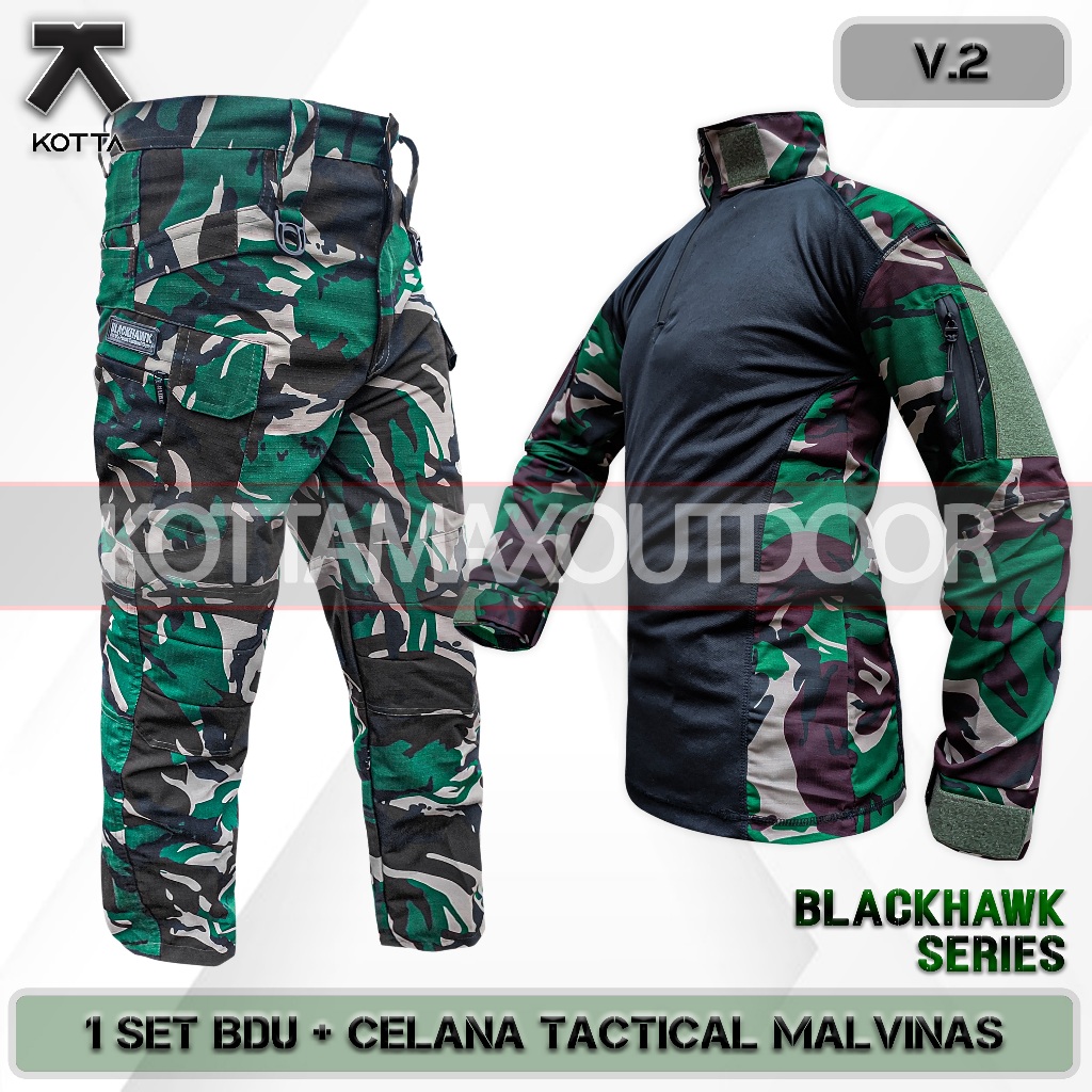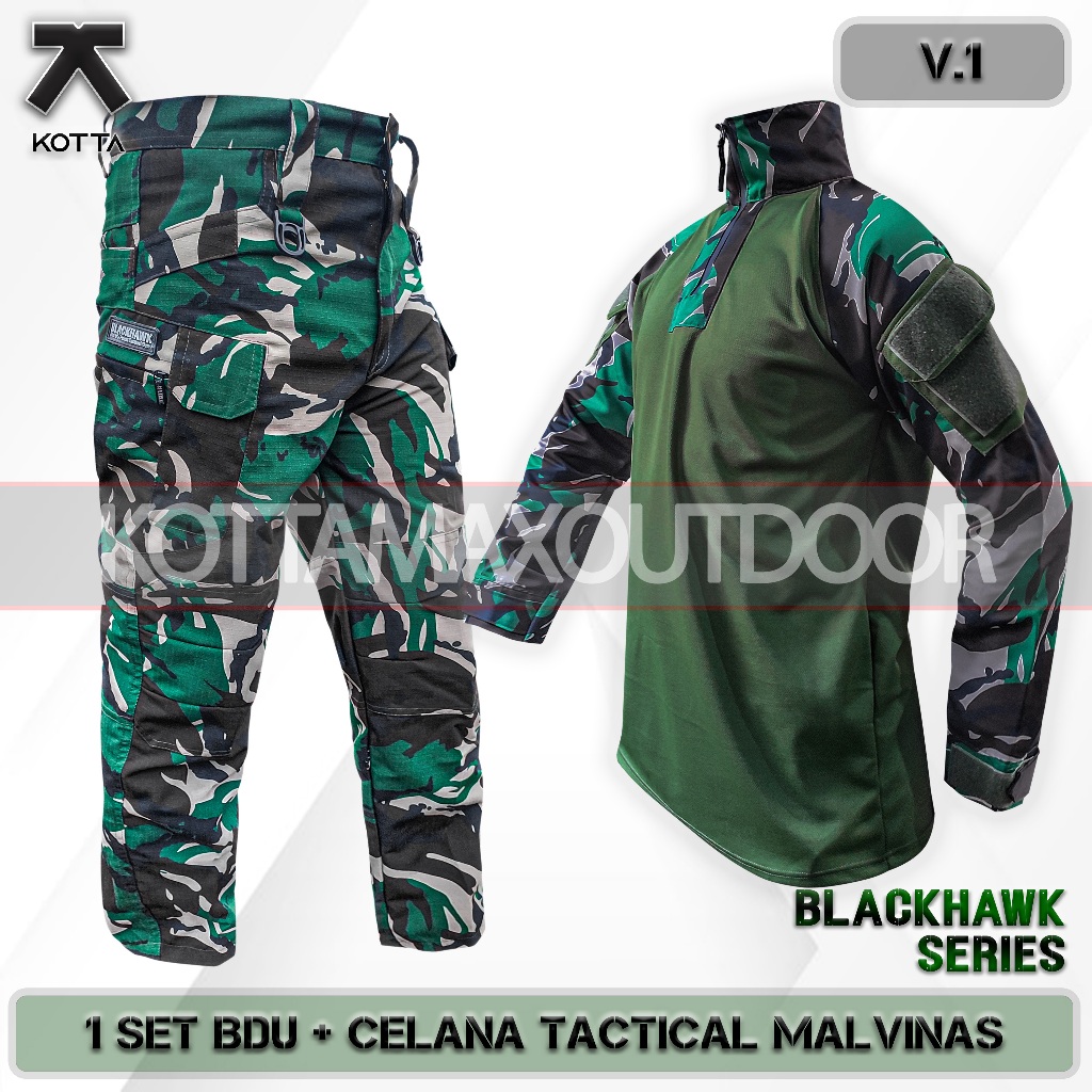 SATU SETELAN PAKAIAN BAJU KAOS BDU COMBAT TACTICAL CELANA TACTICAL LORENG MALVINAS TNI ARMY