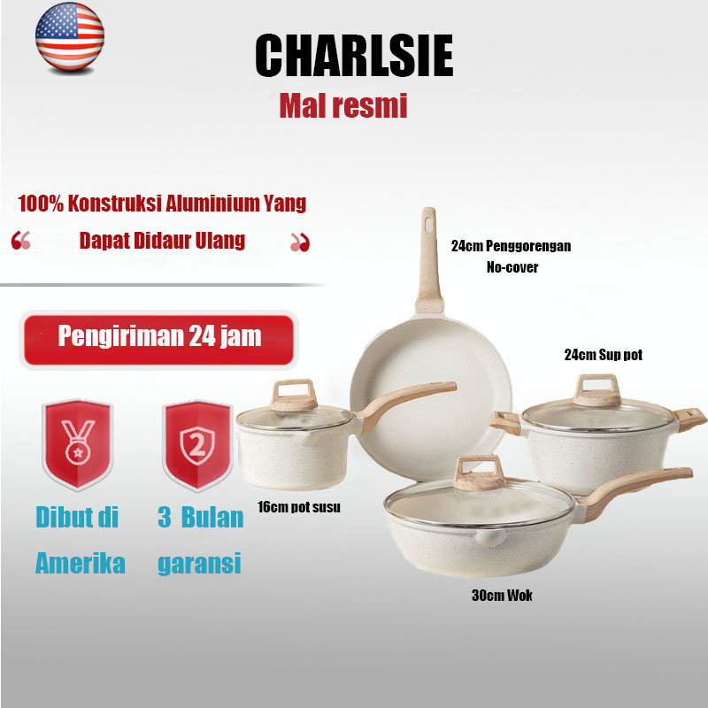 CHARLSIE Antilengket Peralatan Masak/Peralatan Dapur Cocok Untuk Semua Kompor Wajan Panci Paket Keluarga Set Bahan dasar Aluminium dengan Granit coating.