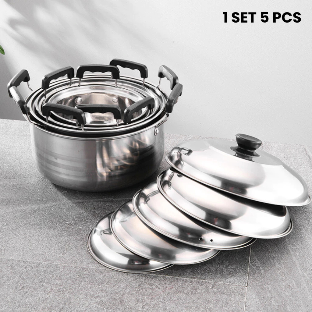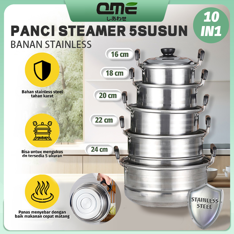 QME 10in1 Panci Steamer Set Stainless isi 5 pcs Kukusan Panci Bahan Tebal PREMIUM/Panci Stainless set