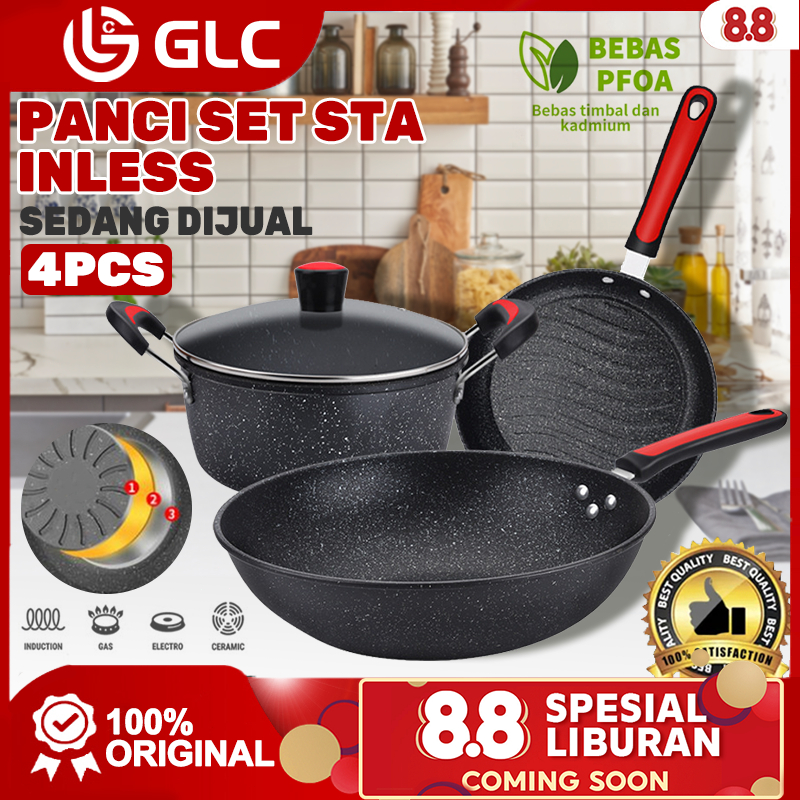 Panci Set isi 3 pcs Marble Coating Set Antilengket Peralatan Masak 3PCS Peralatan Dapur Blaze Wajan Set