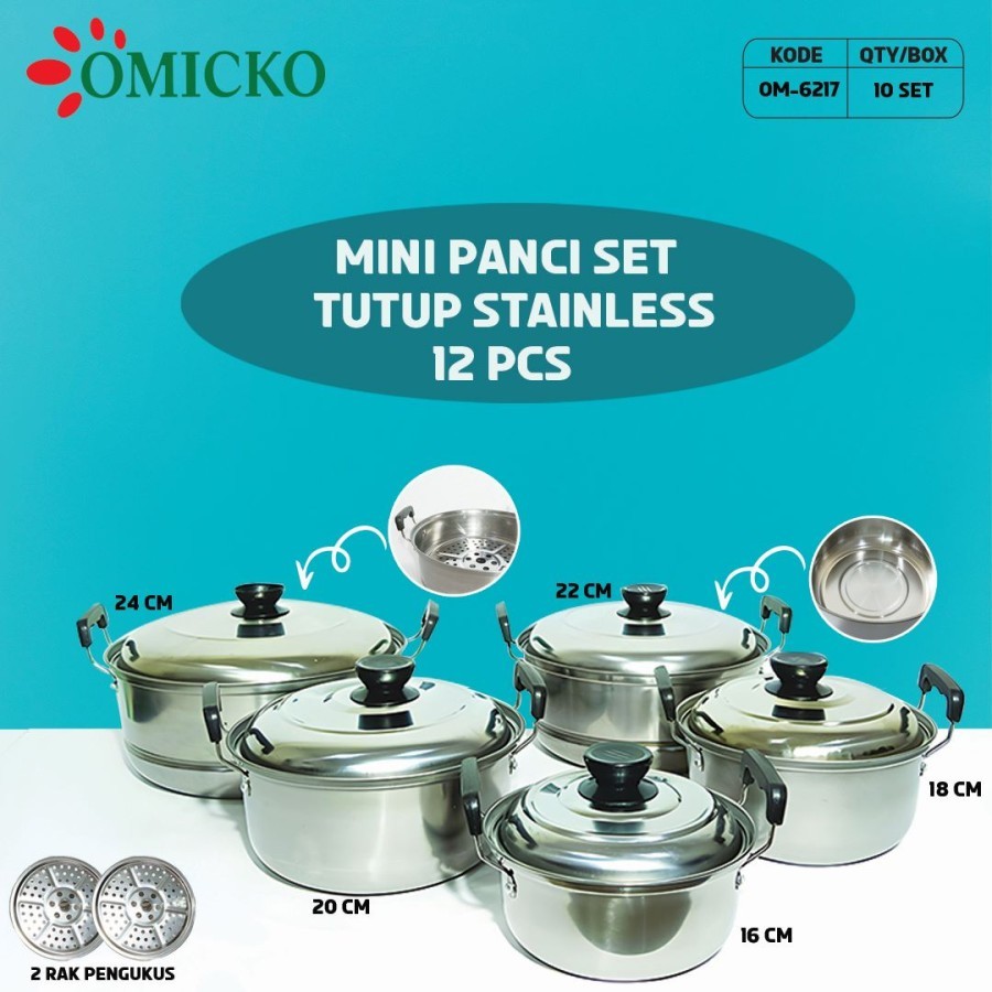 Omicko Panci Set Steamer 12pcs 5 susun Tutup Stanless om 6236
