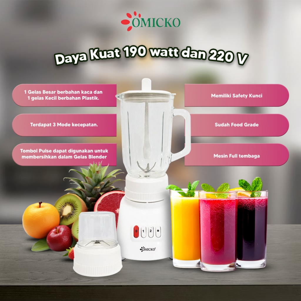 OMICKO Blender Plastik 2in1 Pisau Stainless Food Grade Multifungsi Garansi Resmi 1 Tahun