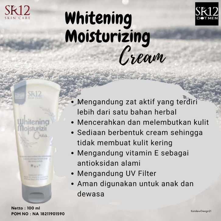 Whitening Moisturizing Cream SR12 membantu melembabkan, mencerahkan dan melindungi kulit dan wajah