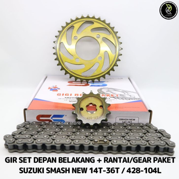 RK - GEAR PAKET GIR SET RANTAI SMASH SHOGUN 125 SMASH NEW SMASH TITAN SHOGUN SP LAMA 14T-36T / 428H-104L