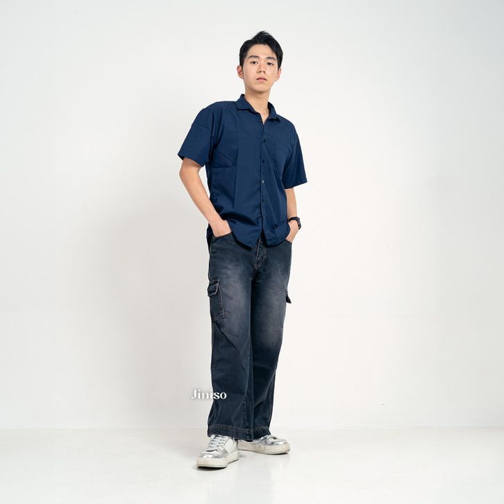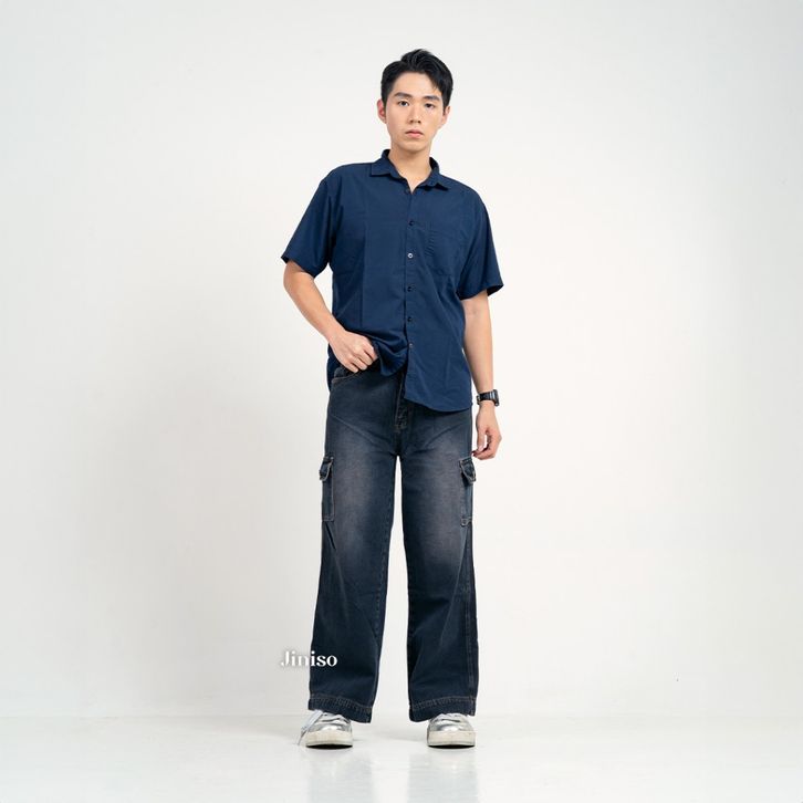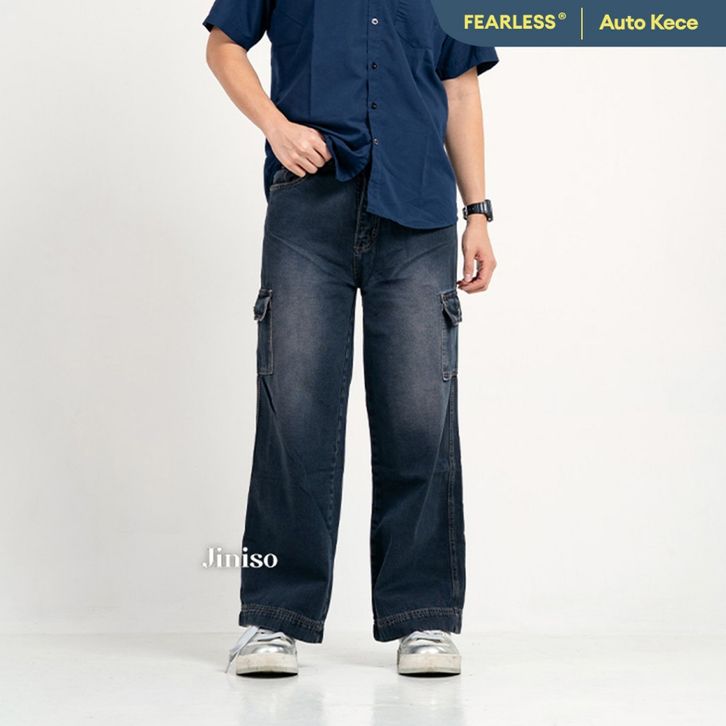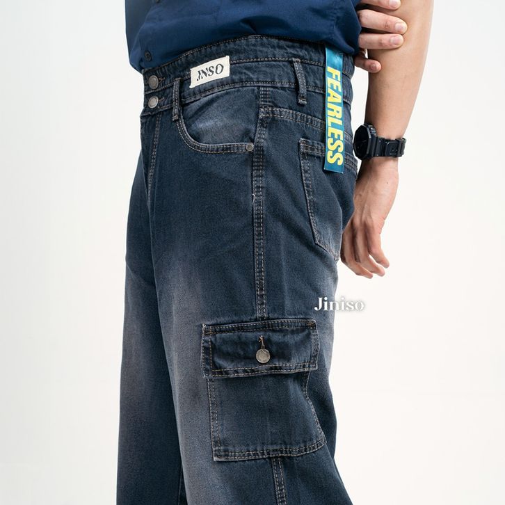 Jiniso Denim Loose Cargo Jeans Pria 463 Celana Jeans Pria Celan Cargo Denim Pria