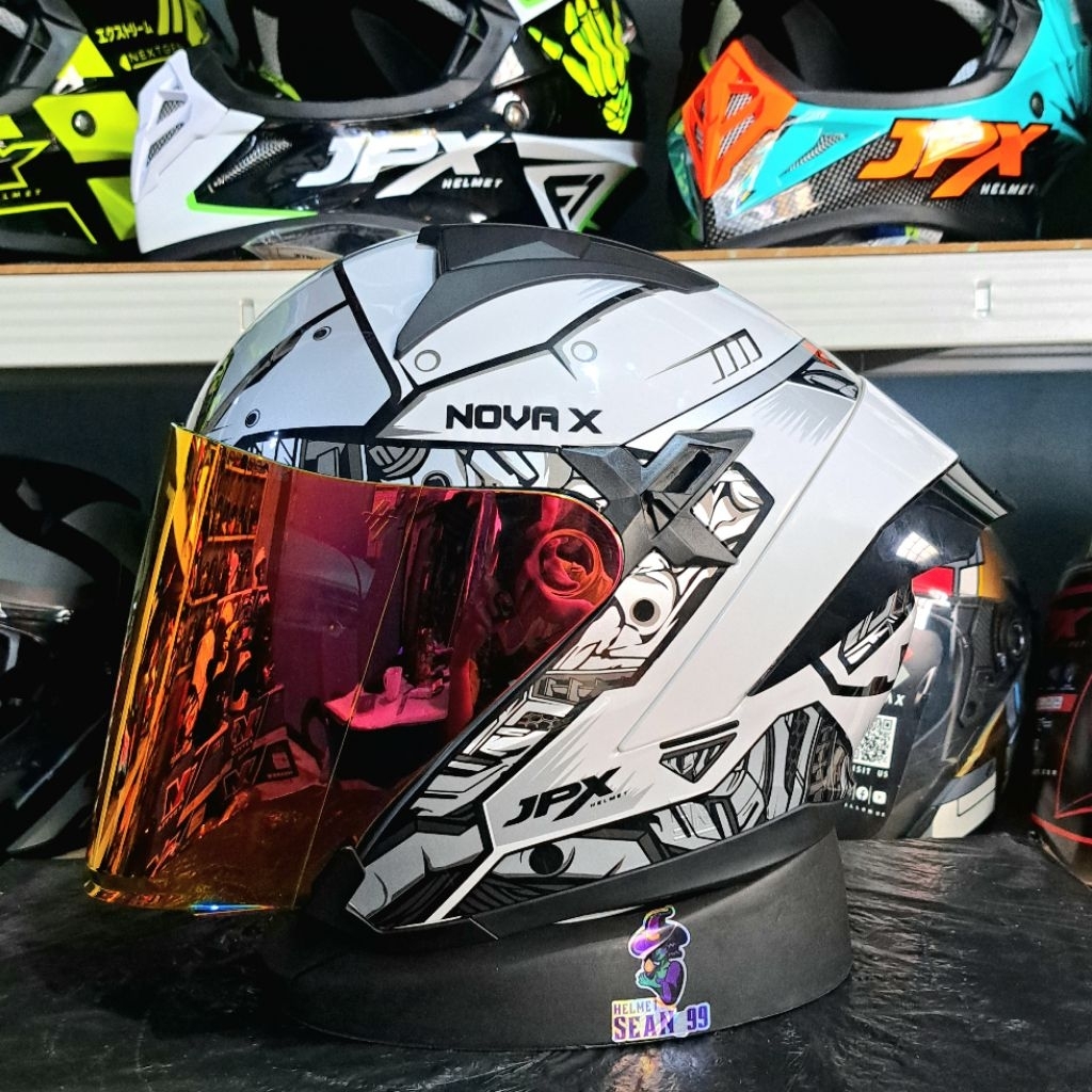 HELM JPX NOVA X V2 MOTIF N2 HALF FACE DOUBLE VISOR ORIGINAL SNI DOT