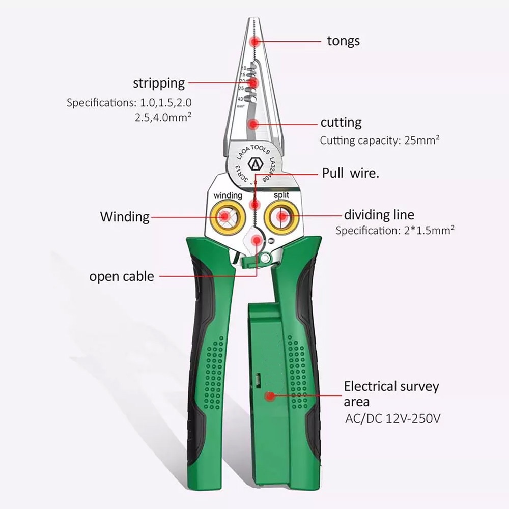 Tang Kabel Tespen Multifungsi 8in1 Kupas Potong Crimping Jepit Lilit Kabel Listrik Tebal Hidung Panjang Tang Elektrikal