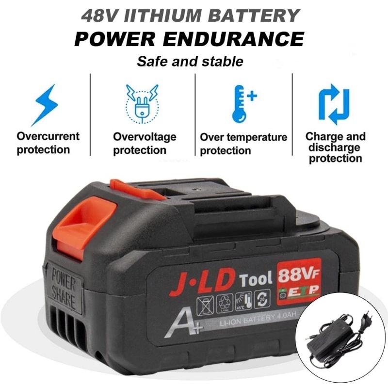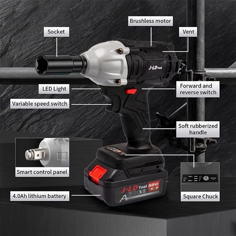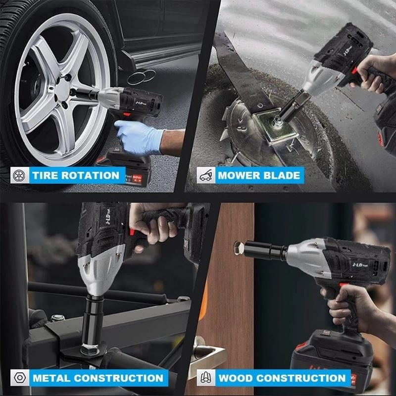 JLD Impact Wrench Brushless 48S 350N.M IMPEK WRENCH Cordless Mesin Bor Baterai 88VF - jld