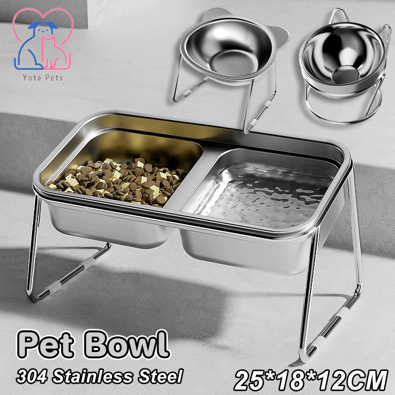2 in 1 Mangkuk Miring Untuk Hewan Peliharaan Dari Stainless Steel / Elevated Stainless Steel Pet Dog Cat Bowl / Durable