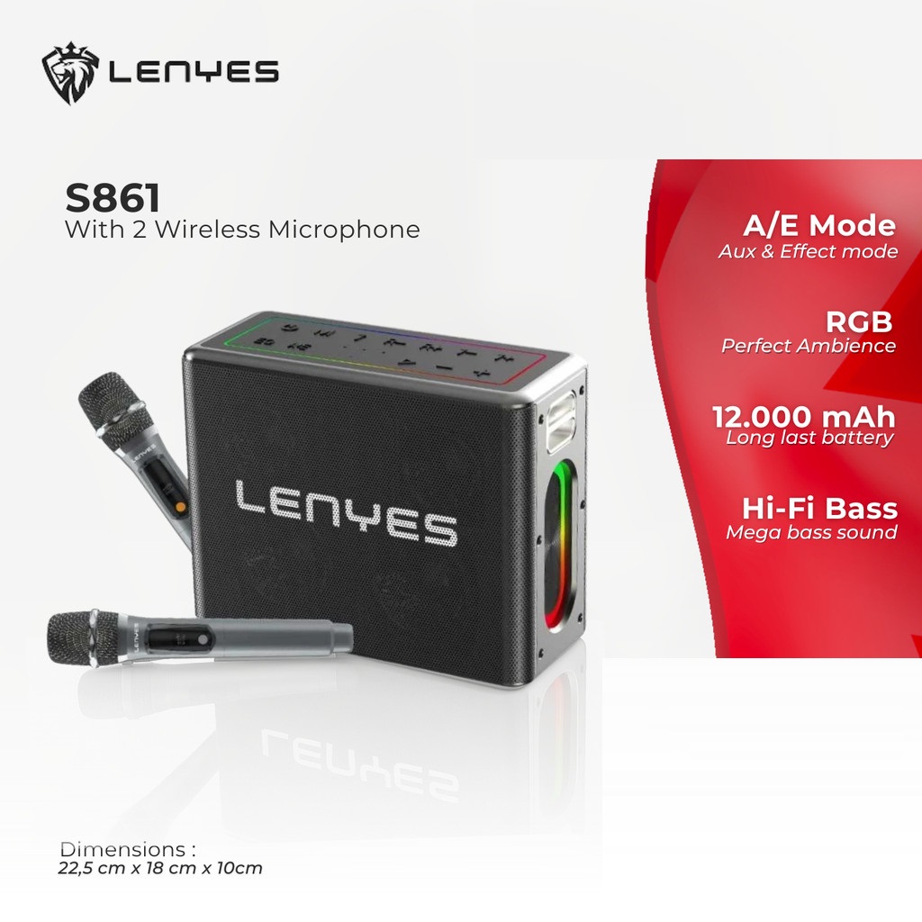 LENYES KARAOKE SPEAKER BLUETOOTH RGB V5.0 150WATT WITH DUAL MICROPHONE HIFI STEREO S861