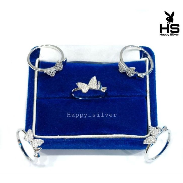 Cin cin Dewasa Perak Asli Silver 925 Lapis mas Putih Model Kupu Kupu Butterfly Permata - Perhiasan Perak Wanita