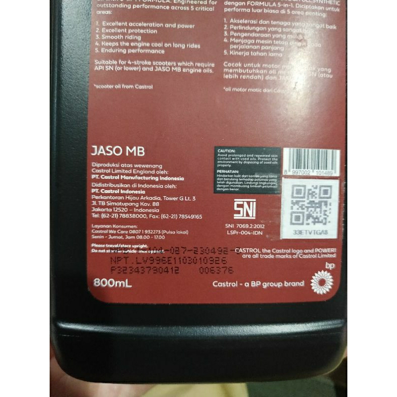 Oli motor 0riginal CASTROL power 1 ultimate matic. 10W-30 0.8 L