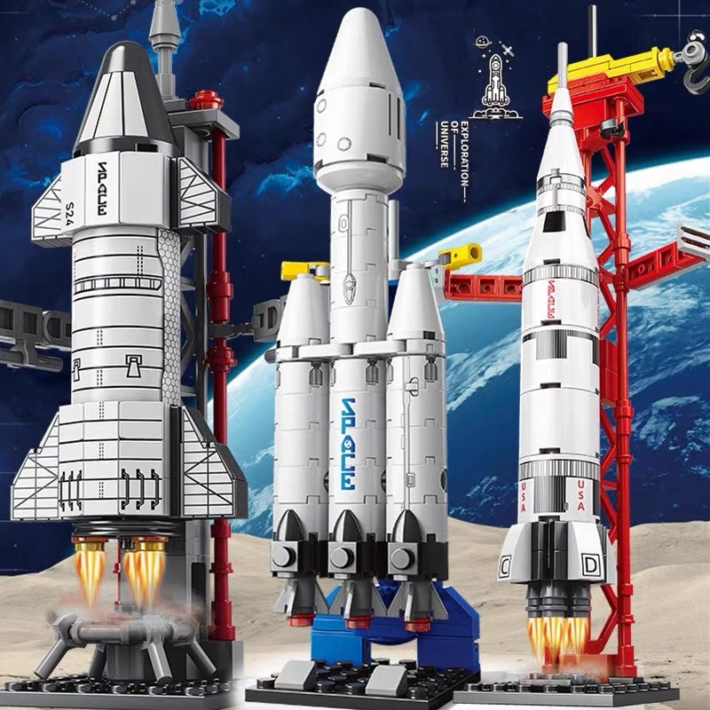 JH TOYS Mainan Balok Mini Roket Space Peluncuran Roket Pesawat Roket Model Mainan Anak laki laki