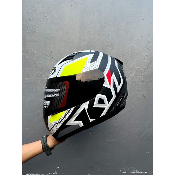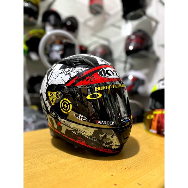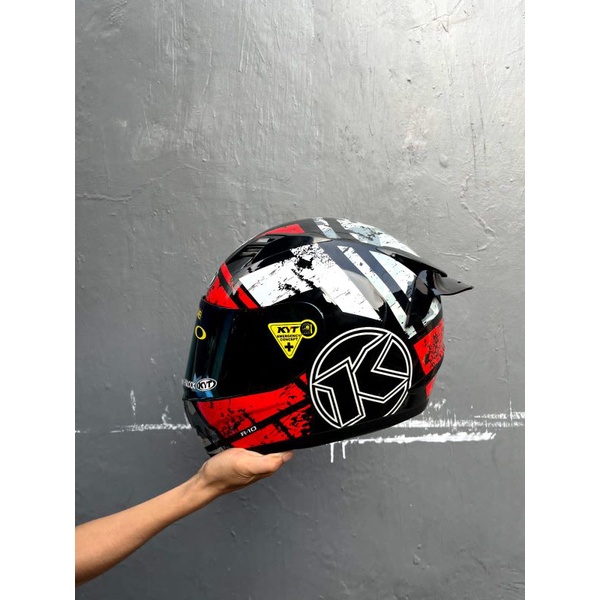 KYT R10 MOTIF PAKE GANTENG HELM FULL FACE - SERI 3 BLACK WHITE READ
