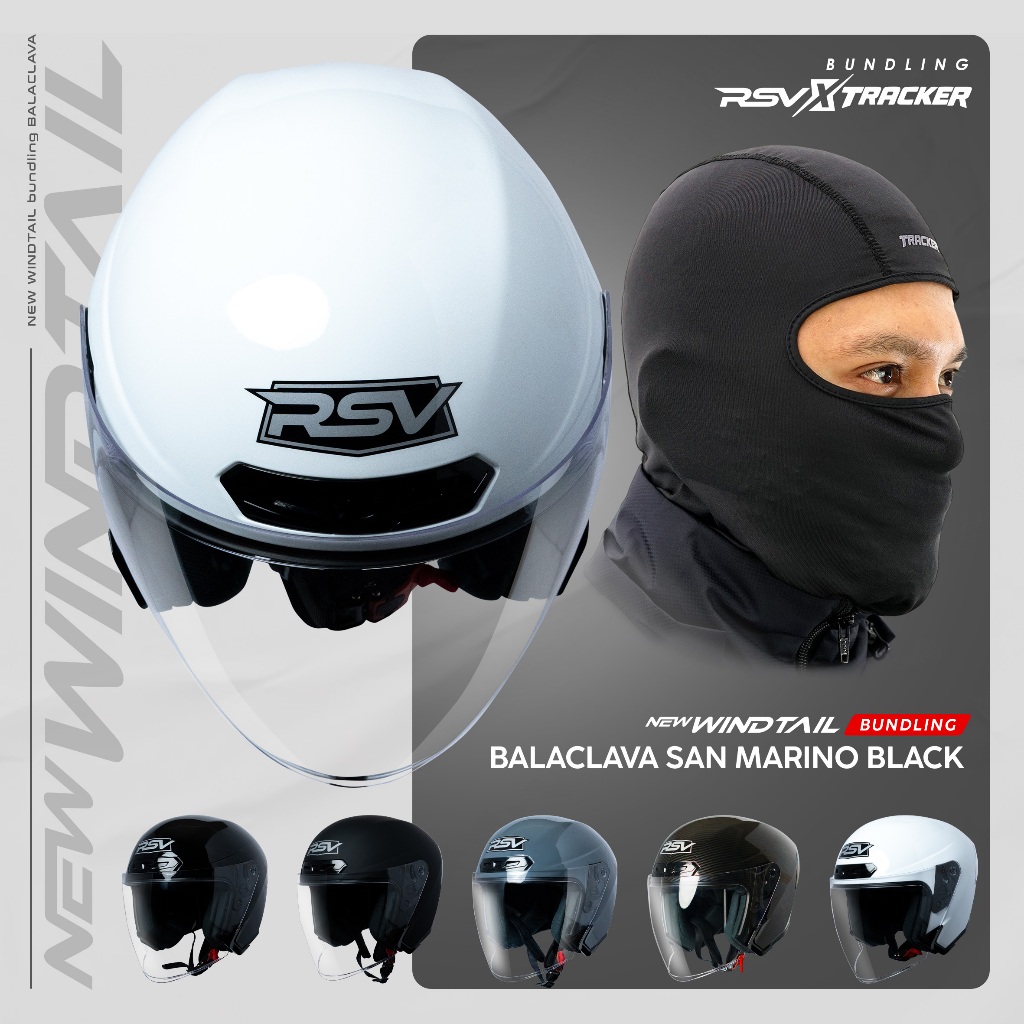 [EXCLUSIVE COLLABORATION: RSV x TRACKER] - HELM RSV NEW WINDTAIL SERIES + Balaclava San Marino Black Pelindung kepala