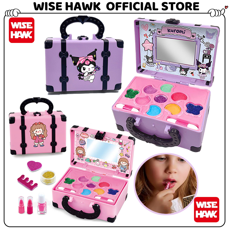 WISE HAWK 17pcs Girls Makeup Toy Eye Shadow Kuromi Anak Beauty Tool Kosmetik Kotak Princess Girl Set
