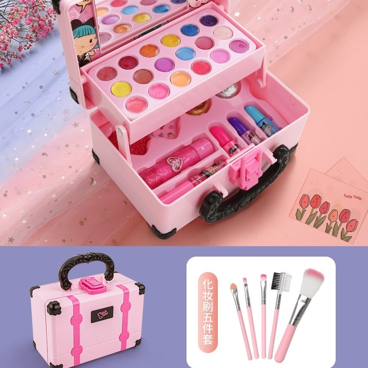 Girls Makeup Toys Kosmetik Kotak Bermain Princess Makeup Tas Girl Toy Play Set Lipstik Eye Shadow Safety Kit Mainan