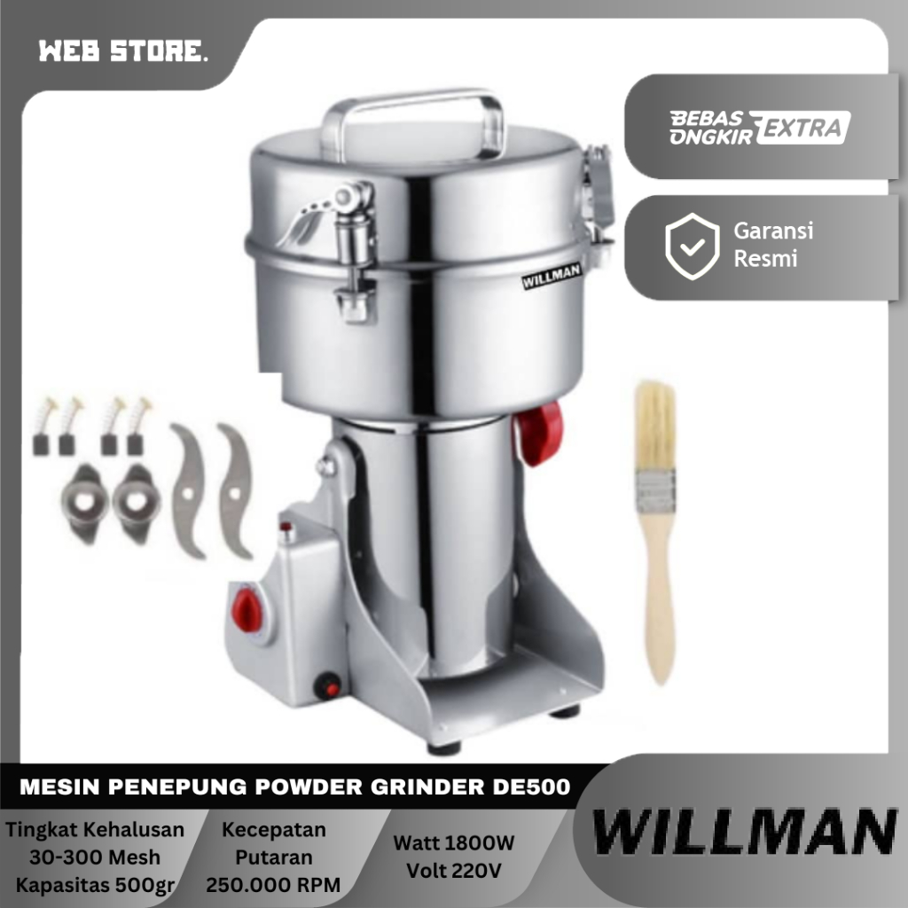 Mesin Grinder Bubuk Tepung Miller Bumbu Kering Rempah Giling Blender Kopi WILLMAN DE 500 gr