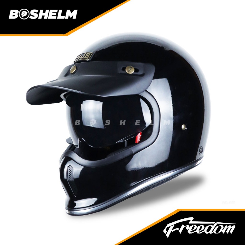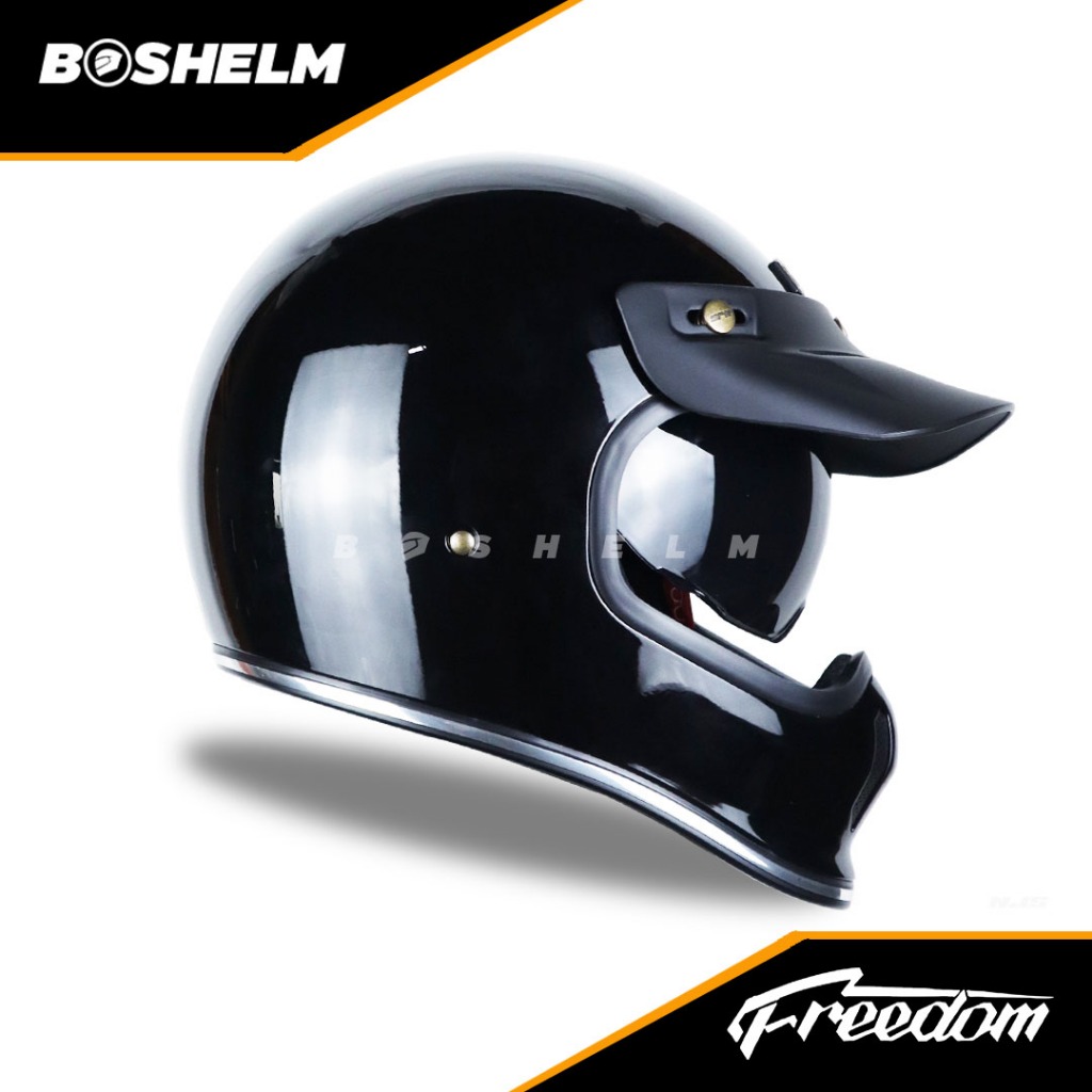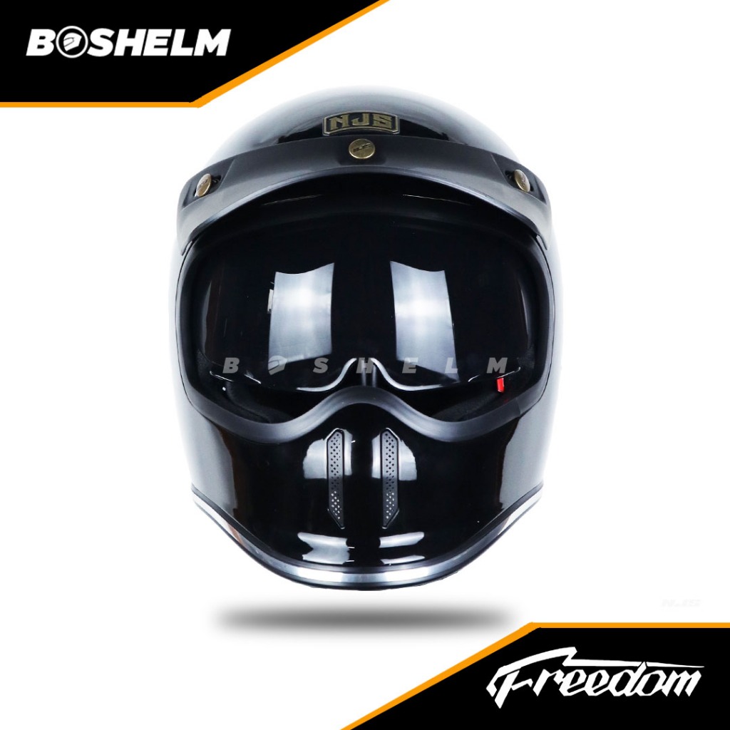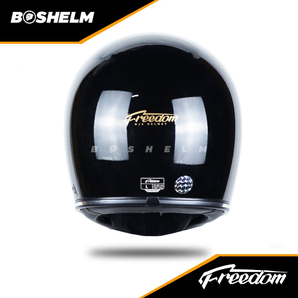 BOSHELM Helm NJS Freedom Solid HITAM GLOSSY Helm Full Face SNI