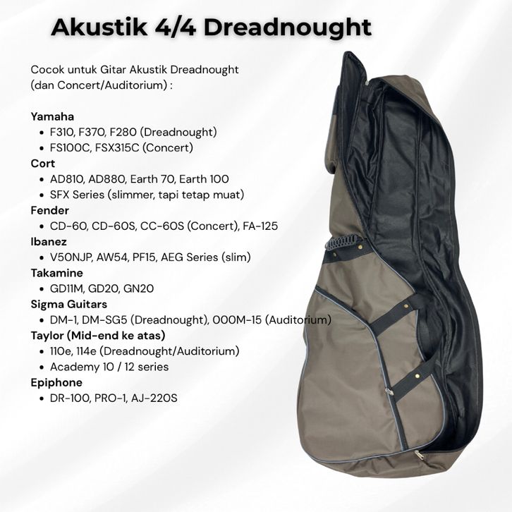 RK - Tas Gitar Akustik 4/4 Dreadnought - Ransel Tahan Air Ringan | Softcase